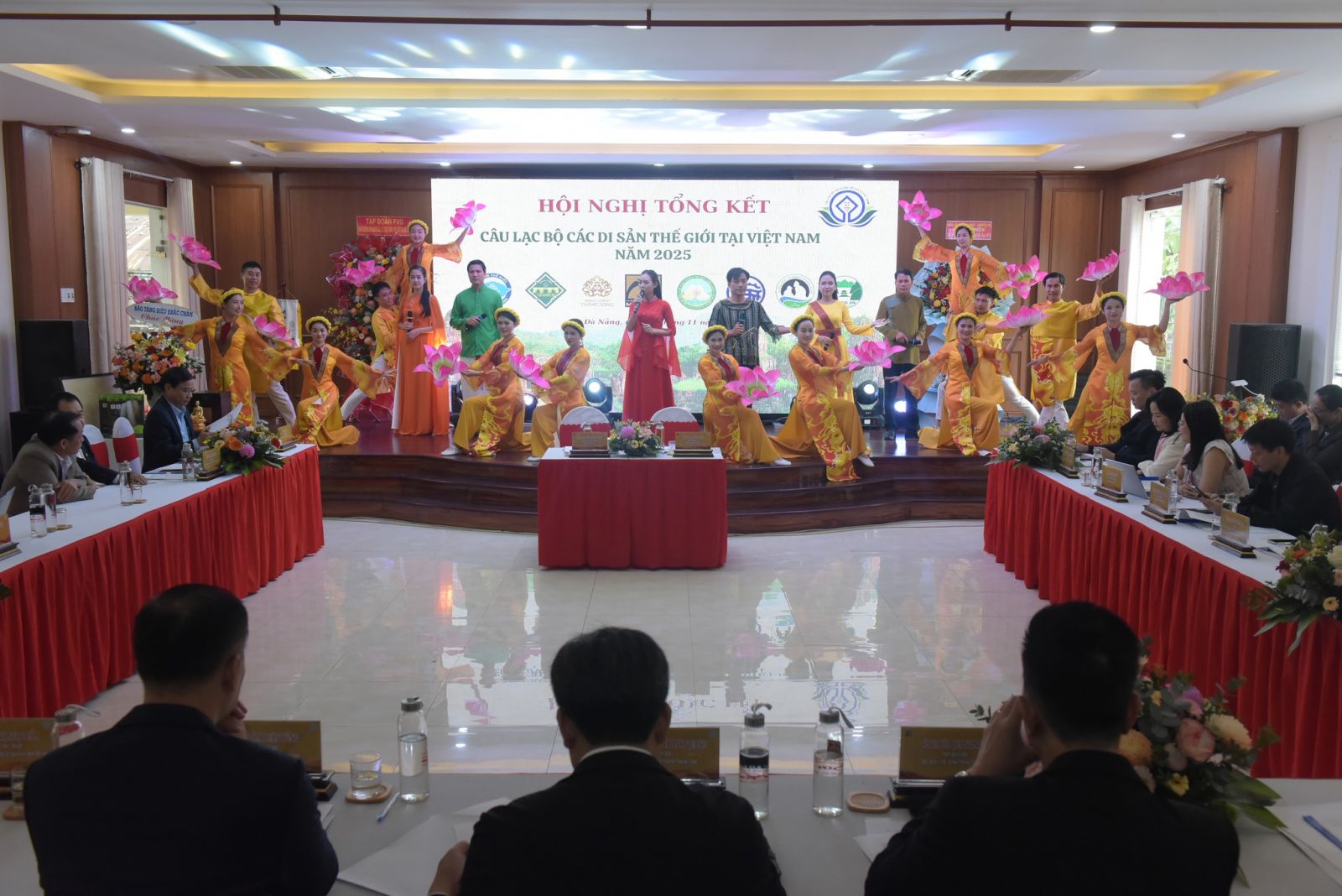 Tại Hội nghị, bà Văn Thị Cẩm Tú – Phó Giám đốc Ban quản lý Di sản văn hoá Thế giới Mỹ Sơn, đại diện cho Chủ tịch CLB 2025 đã báo cáo Kết quả hoạt động của CLB Di sản Thế giới tại Việt Nam năm 2025 và Kế hoạch hoạt động năm 2026.Thời gian qua, Câu lạc bộ luôn nhận được sự quan tâm, chỉ đạo của Bộ Văn hoá, Thể thao và Du lịch, Uỷ ban Quốc gia UNESCO Việt Nam, sự phối hợp giúp đỡ của Văn phòng UNESCO tại Hà Nội, Cục Di sản Văn hoá, Quỹ bảo tồn Di sản văn hoá, các Sở, Ban, Ngành cấp tỉnh và chính quyền các địa phương.
