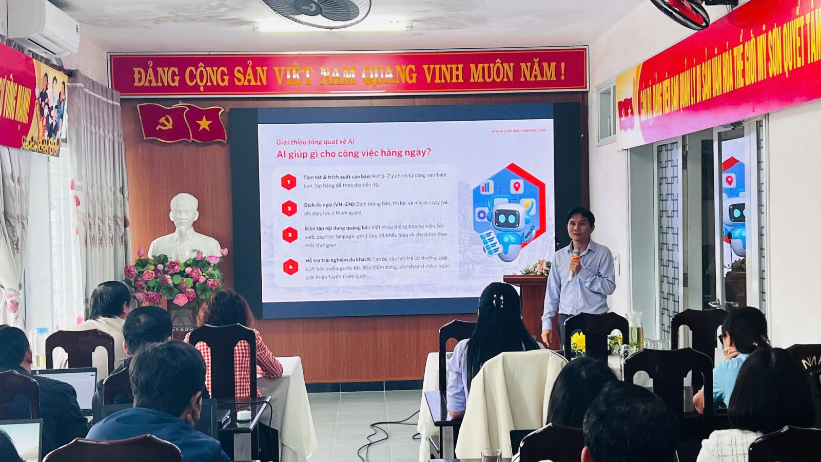 Việc triển khai tập huấn về ứng dụng công nghệ AI cho đội ngũ cán bộ lãnh đạo, quản lý và chuyên viên tại Ban Quản lý DSVHTG Mỹ Sơn là nhằm trang bị kiến thức công nghệ mới để đội ngũ nhân sự Ban nắm bắt được xu thế hiện nay, vận dụng vào nhiệm vụ chuyên môn để thực hiện tốt nhiệm vụ bảo tồn và phát huy Khu đền tháp Mỹ Sơn.
